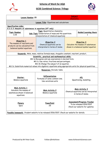 L25 Equations And Calculations New 09 16 Chemistry Combined Science Trilogy Aqa Paper 1 Teaching Resources
